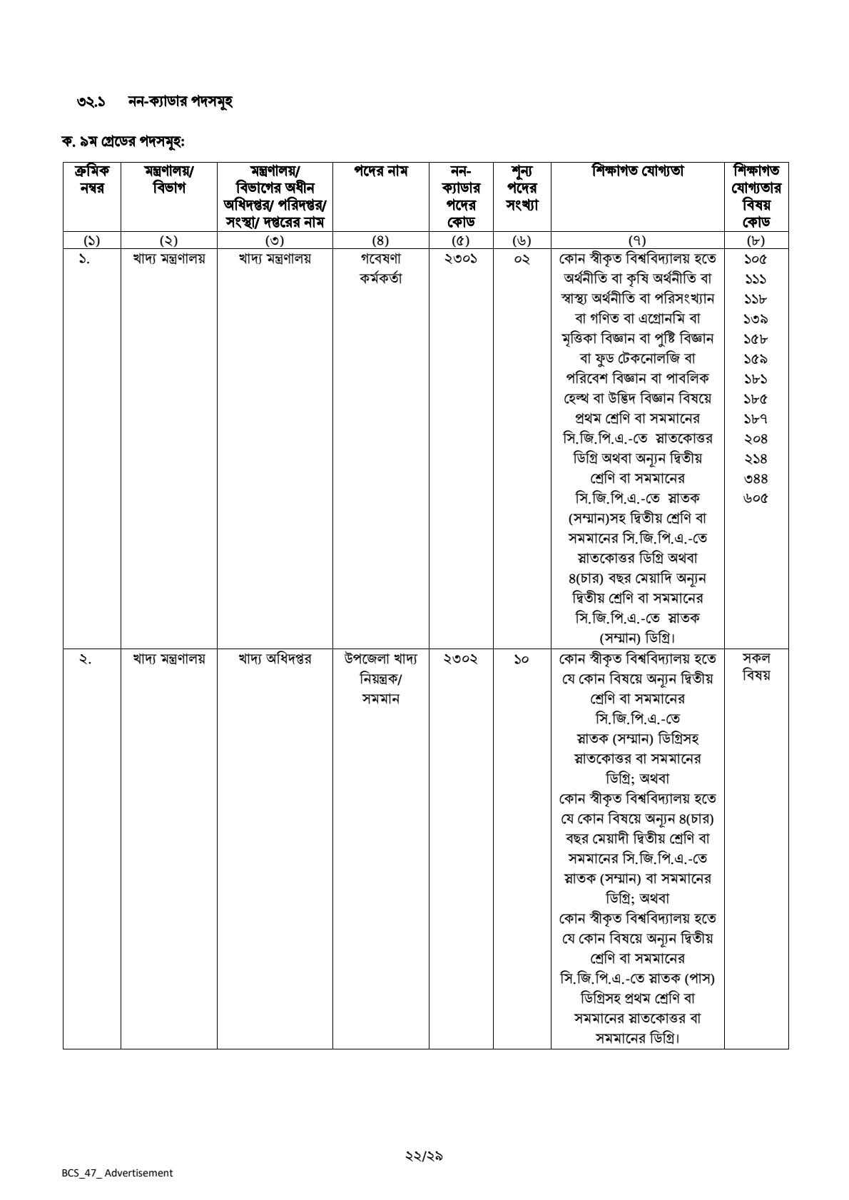 Key Highlights of the 47th BCS Job Circular