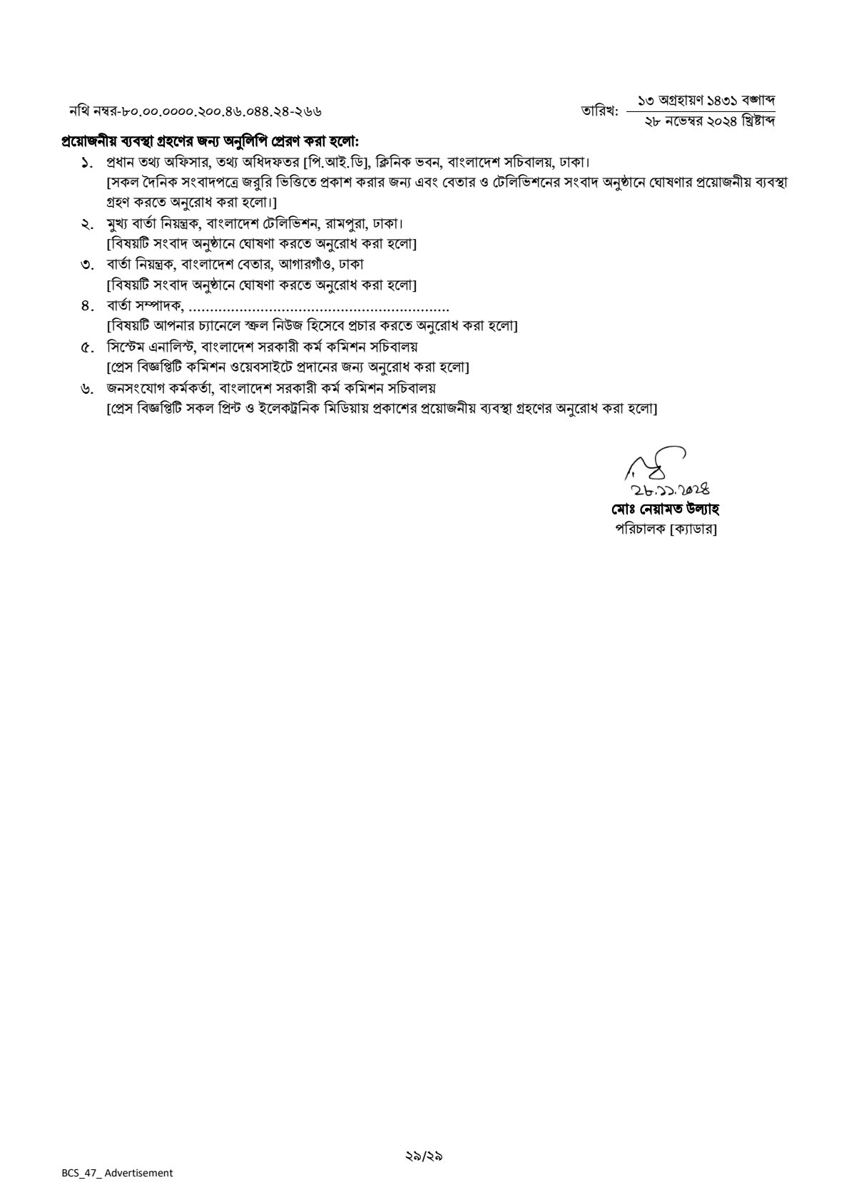 | 47th BCS Circular 2024 | |