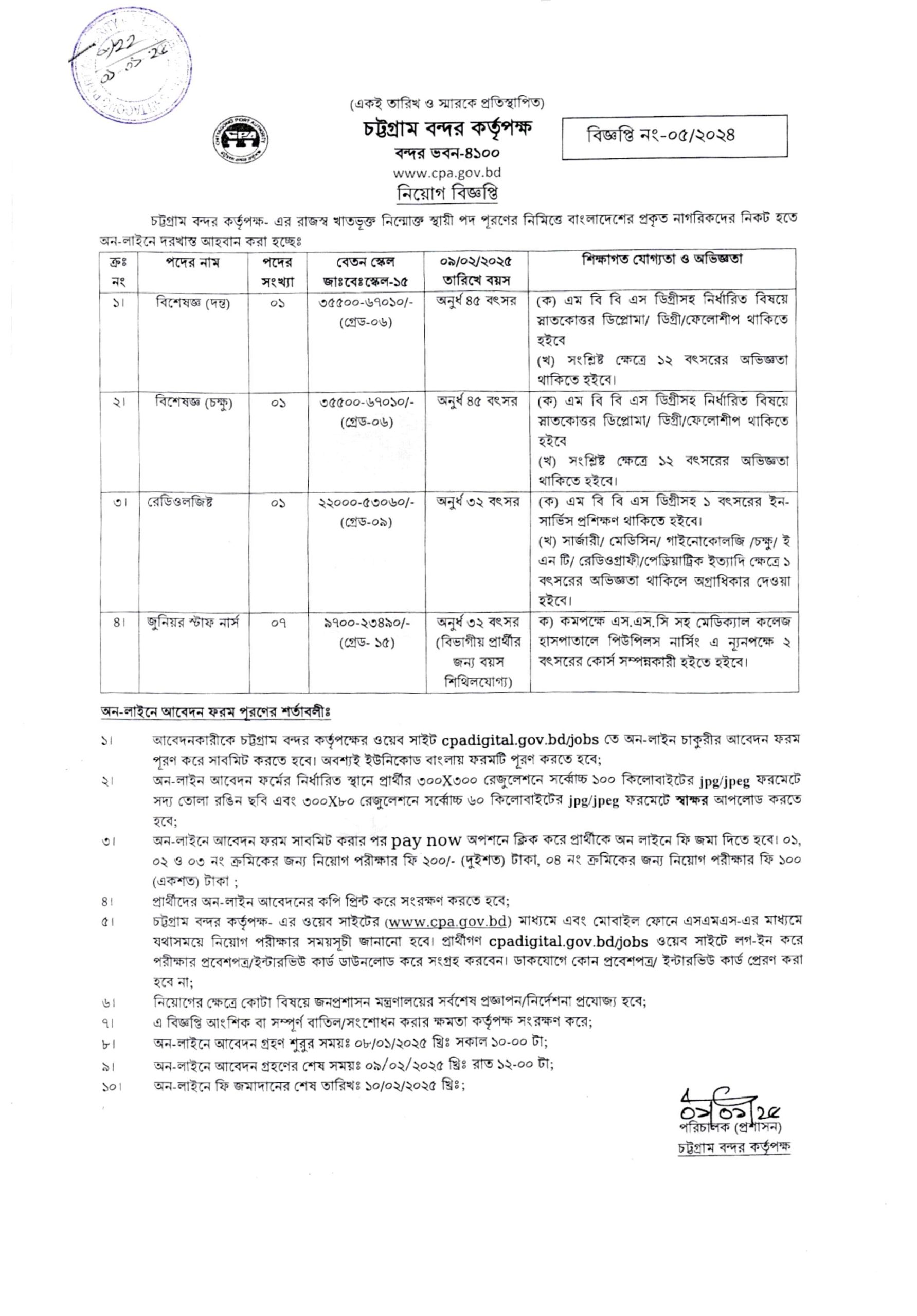 Interested and eligible candidates are encouraged to apply within the stipulated deadline to seize this exciting career opportunity at Chittagong Port. For detailed information and updates, visit the official website https://cpa.gov.bd/