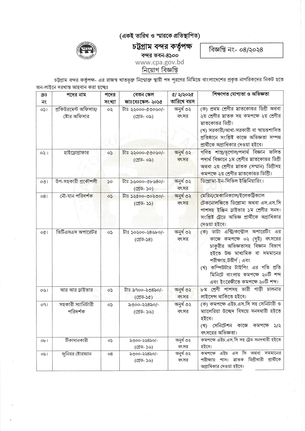 Chittagong Port Authority Job Circular 2025