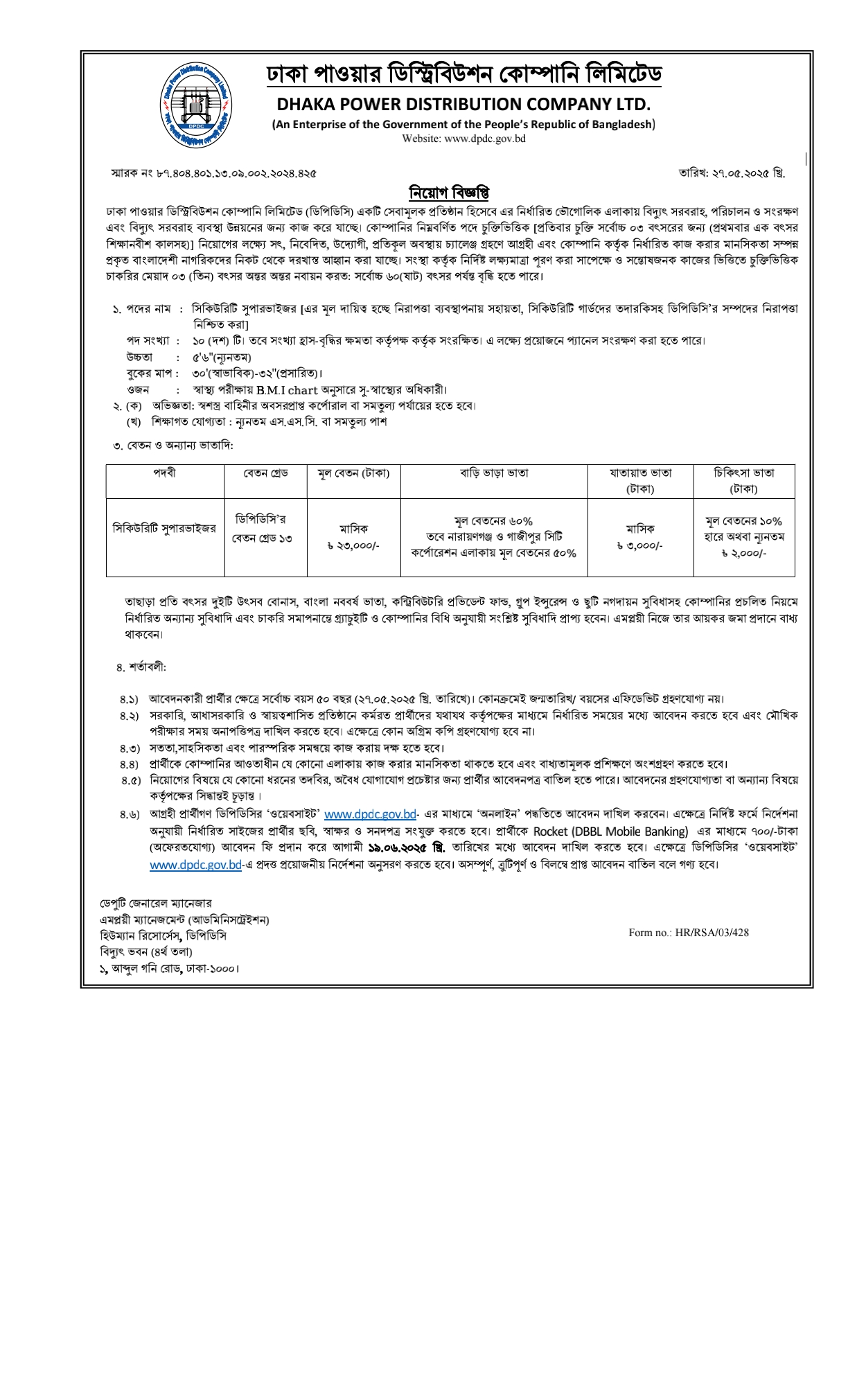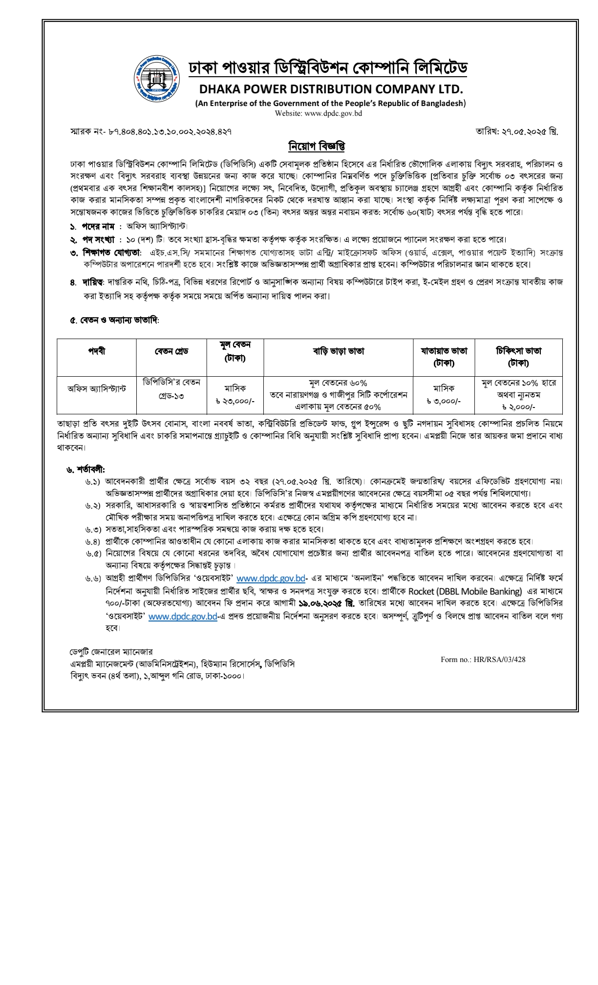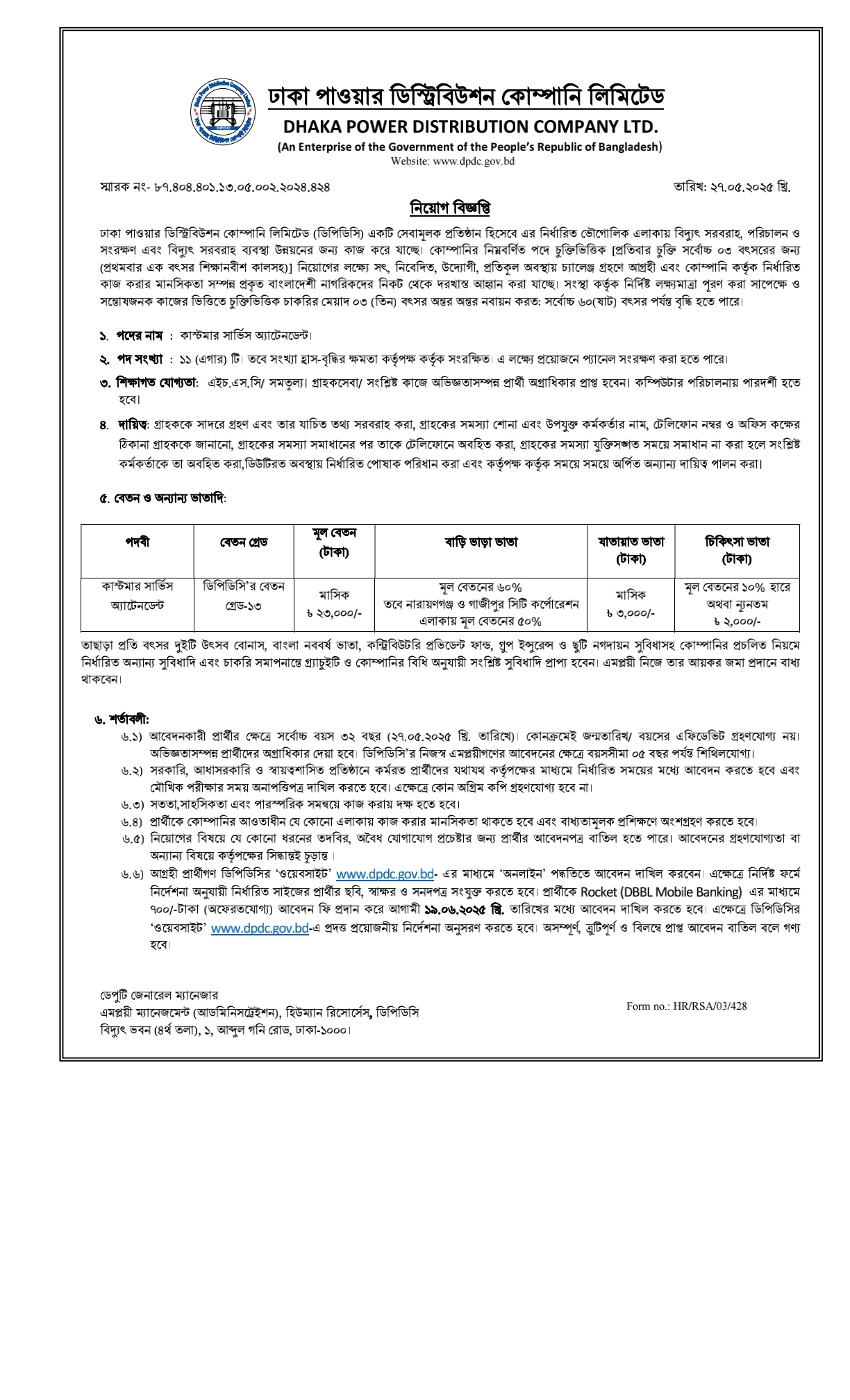 | Employer Name: | Dhaka Power Distribution Company (DPDC). |