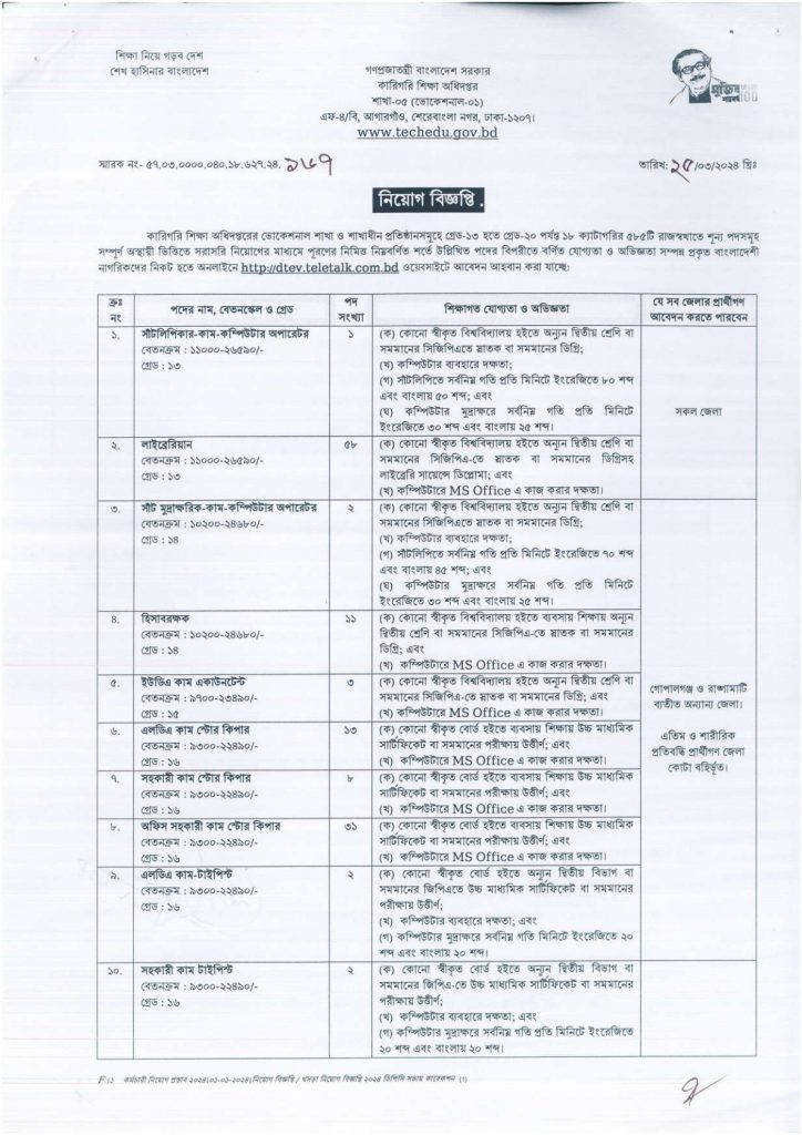 The Directorate of Technical Education- DTEV has announced the much-anticipated General & Technical Job Re-Circular for 2025, opening doors to 751 positions across various categories. This circular provides a golden opportunity for job seekers eager to embark on a career in government service. Here’s everything you need to know about the DTEV Job Circular 2025 and how to apply.