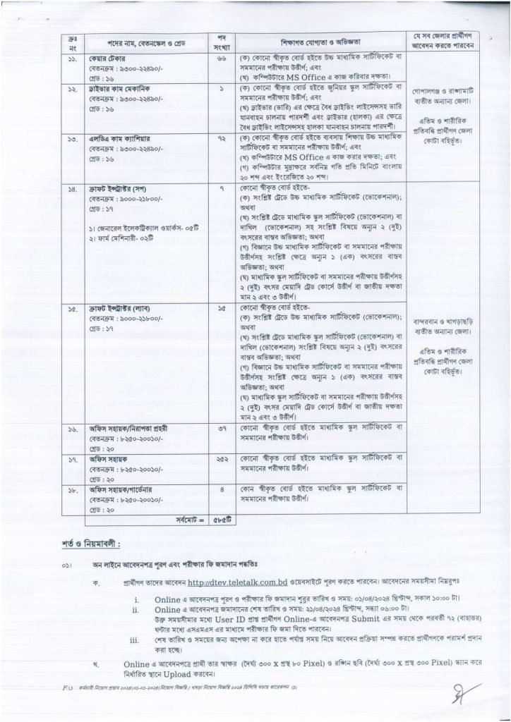 • Application Method: Candidates must apply online via http://dtev.teletalk.com.bd/