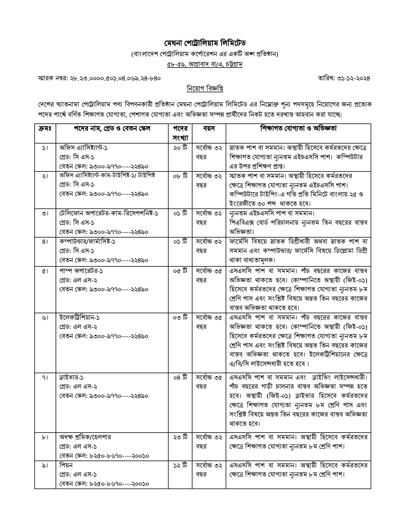 | Meghna Petroleum Limited Job Circular 2024-2025 | |
